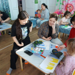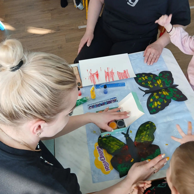 ✅ Работа с сеткой и солью знакомит с новыми фактурами и объемом. Но самое главное — это восторг в глазах детей от того, что мамы были рядом! Взрослые тоже с удовольствием «пачкали» руки в краске, искренне радуясь каждому мазку. Такие занятия — это моменты истинной близости и радость общего дела. Приятным и полезным завершением встречи стала раздача специальных буклетов, которые Ольга Ивановна подготовила для каждой семьи. В них собраны пошаговые инструкции, чтобы родители могли легко повторить эти творческие эксперименты дома, превращая обычный вечер в семейный праздник искусства!